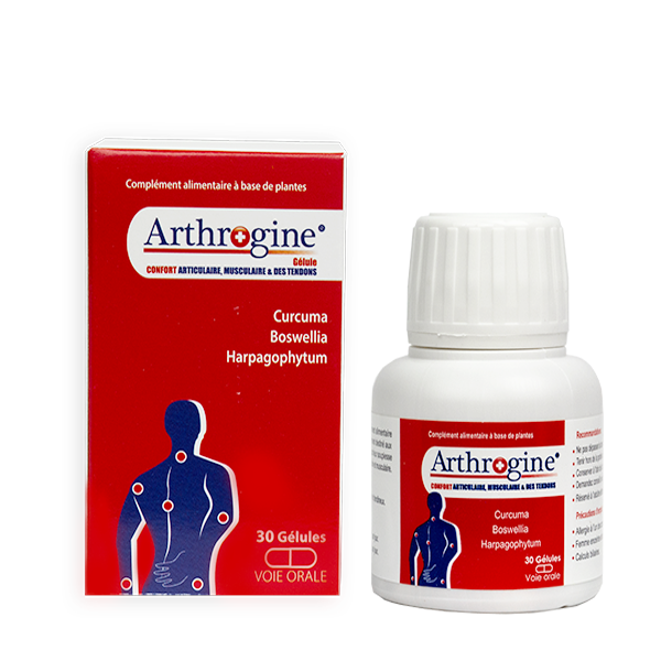 Arthrogine capsule is a herbal food supplement particularly intended for people wishing to strengthen their flexibility and improve their joint and muscle comfort.
